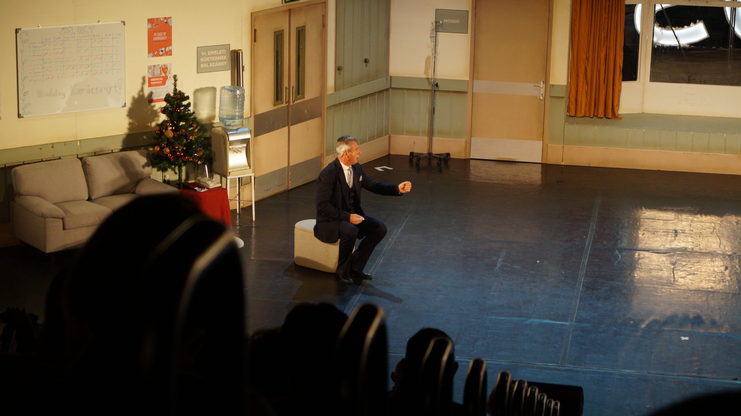 Ettől kezdve aztán az események szédítő tempóban követik egymást: dr. Mortimore szorult helyzetében nem lévén más választása, kétségbeesésében kollégáját, a kissé ügyetlen Dr. Bonneyt (Ónodi Gábor) próbálja beszervezni egy elképesztően bonyolult tervbe, arra kéri, hogy ideiglenesen vállalja az apaságot… Az apaság látszatának fenntartása azonban nem várt fordulatokat szül… Ettől a ponttól kezdve a hazugságok félreértésekhez, a mellébeszélések zagyvaságokhoz vezetnek, és nem lehet pontosan tudni, hogy a kórházban ki az egészségügyi dolgozó és ki a pszichiátriai beteg. A kórház a feje tetejére áll, a szálak kibogozhatatlanul összekuszálódnak. A poénok ülnek, a hatásszünetek tökéletesek, a színészek játéka nagyszerű, az események nagy nyertese a közönség, aki számára megállás nélküli nevetés.